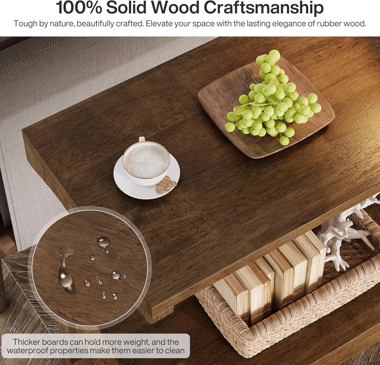 Solid Wood End Table, Narrow Side Table with 2-Tier Storage Shelf
