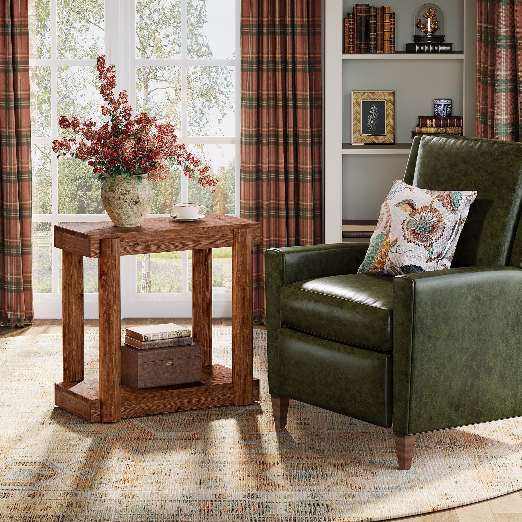 Solid Wood Modern Farmhouse End Table, 2-Tier Storage Shelf Side Table for Small Spaces